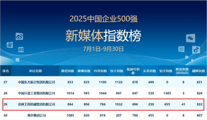 在新媒體時代,徐工致力于將硬核工業裝備,轉化為有溫度、可感知的品牌故事,在屏端與無數用戶和伙伴建立了深度鏈接與情感共鳴。此次位列行業新媒體影響力第一,正是公眾與行業對徐工品牌聲量與實干成果的雙重認可。