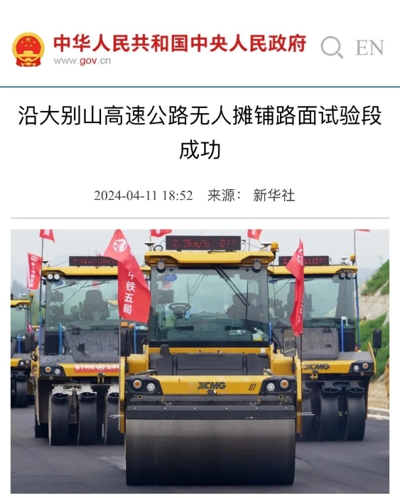 徐工數字化智能施工技術的運用,減少人為誤差,確保工程質量的精準可控,有效提升沿大別山高速雞商段的建設效率和質量。