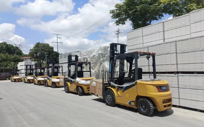 湖南某石材廠內,徐工叉車新 E 系列電動平衡重叉車,耀世登場!