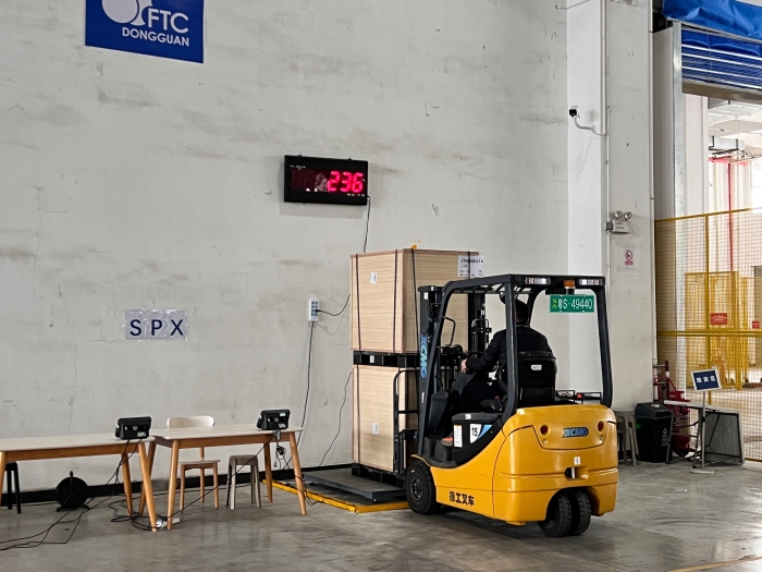 在華南區某大型保稅倉內,十幾臺徐工三支點系列叉車正在進行緊張的搬運工作,