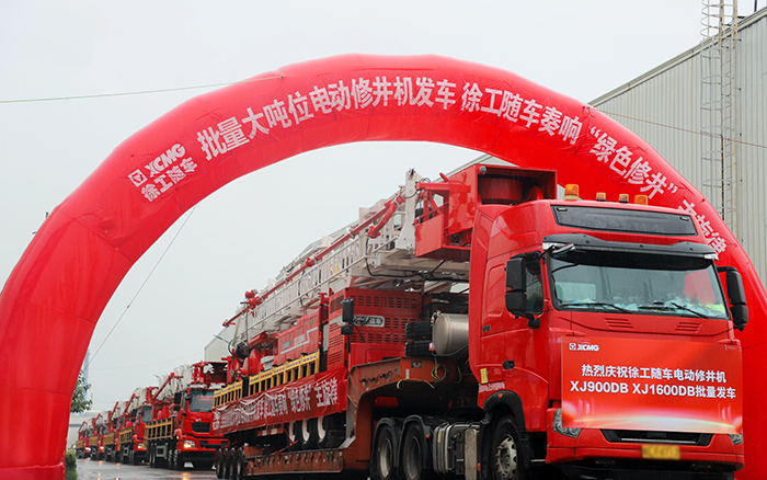 本次批量發(fā)車(chē)的兩款產(chǎn)品型號(hào)分別是XJ900DB和XJ1600DB。其中,徐工XJ1600DB電動(dòng)修井機(jī)是行業(yè)首臺(tái)160t級(jí)電動(dòng)儲(chǔ)能自繃?yán)K修井機(jī),整車(chē)寬度2.55m,滿(mǎn)足最新國(guó)標(biāo)道路法規(guī)要求,為同等級(jí)行業(yè)首款可上正式牌照的產(chǎn)品,解決了每次轉(zhuǎn)場(chǎng)前都要辦理臨時(shí)牌照的難題。