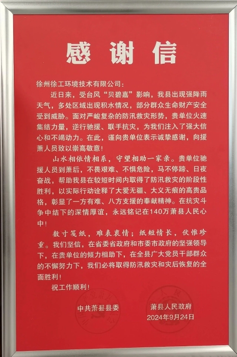 “此行是專門來感謝徐工在蕭縣防汛救災中的無私奉獻。”董局長表示,“你們的行動不僅體現了徐工的社會責任感,更讓我們感受到了‘防汛救災顯大愛 風雨同舟見真情’的深刻內涵。我們特地做了錦旗和感謝信,來表達我們的謝意。”