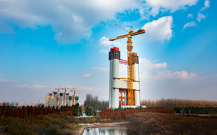 “北主塔分為三十個(gè)節(jié)段建設(shè),橋塔2至30節(jié)段中最重的一個(gè)達(dá)522噸,必須使用塔吊平穩(wěn)吊裝和拼接,確保毫米級精度。”項(xiàng)目負(fù)責(zé)人介紹。