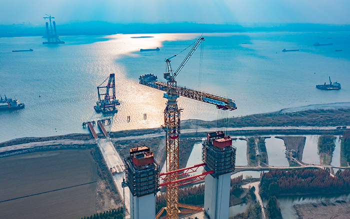 在此次張靖皋長江大橋建設(shè),XGT15000-600S再次贏得施工方“技術(shù)先進(jìn)、安全可靠、吊裝能力強(qiáng)、操作平穩(wěn)、就位精準(zhǔn)、安拆效率高、智能化水平高、施工效益顯著”的高度肯定。