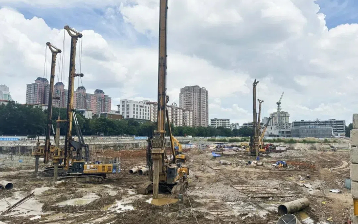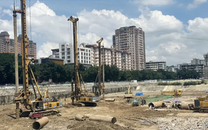 施工區地質構造復雜,石灰巖、沙層,粘土和溶洞交錯,樁深20-30m,樁徑0.8-1.4m,且面臨塌方、縮孔、漏漿等危險。如此高難度的施工條件,項目方果斷選擇徐工旋挖鉆機進行助力。