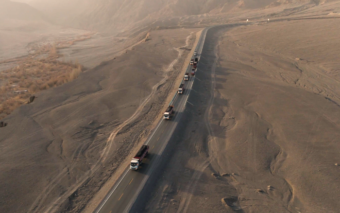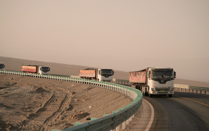 西北戈壁灘上山脈和天際線交織成一幅壯麗的畫卷這片土地不僅有著豐饒的礦產資源還孕育著不斷崛起的力量徐工新能源重卡應時而至。