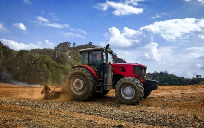XT1604-6B拖拉機在崇左的坡地蔗田里如履平地,已經(jīng)在當(dāng)?shù)赝瓿纱笠?guī)模示范應(yīng)用,硬是把“望天田”變成了“聚寶盆”。