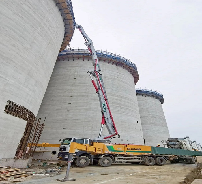 六座巨型糧倉拔地而起,徐工HB62V泵車化身 “基建尖兵”,精準擊破施工精度高、工期緊的雙重挑戰。