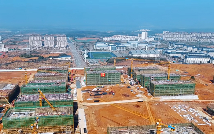 三江之口,七省通衢。在江西省九江市,37臺徐工XGT6013-6S1塔機批量參建南昌工學院共青校區項目,施工現場一片火熱,群塔施工緊張有序,“徐工金”成為現場最亮眼的一道景色。