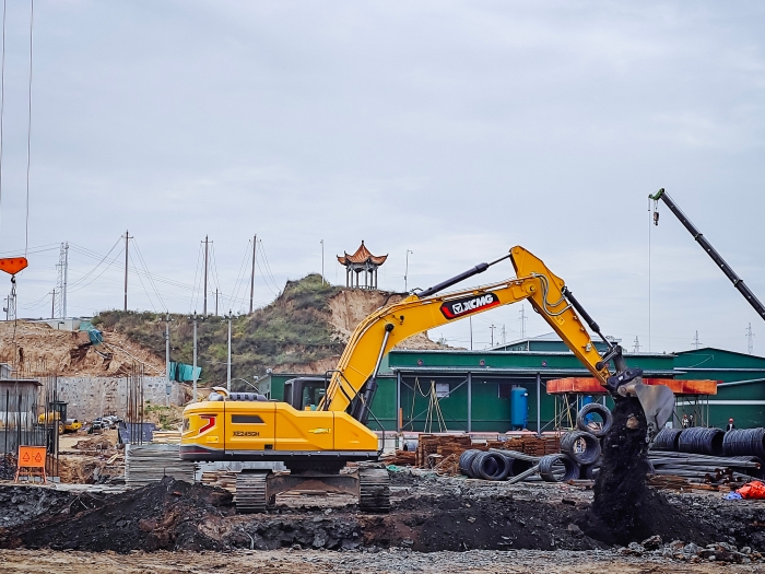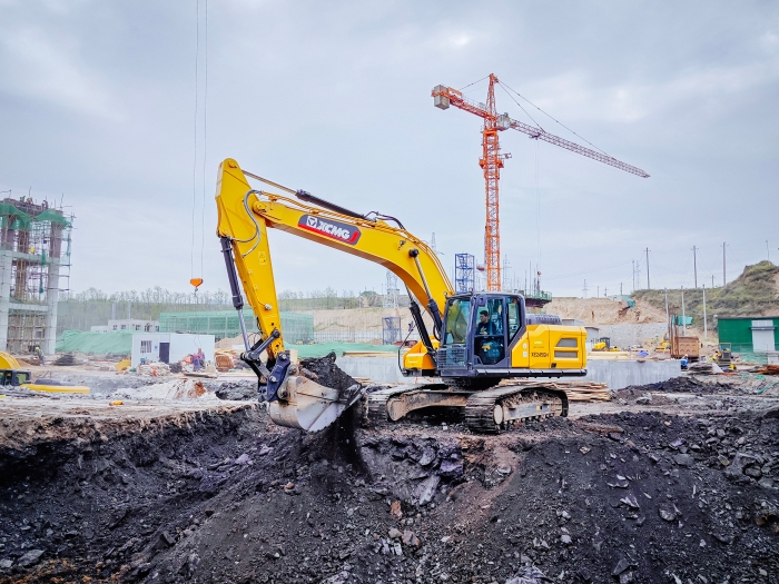 “山皮揭掉之后,到下面的石層,兩臺XE245GH將換裝破碎錘,進行石頭破碎作業。每道工序最難啃的活兒,都指著這兩臺XE245GH來承攬,好鋼當然要用在刀刃上。”項目負責人王總介紹稱。