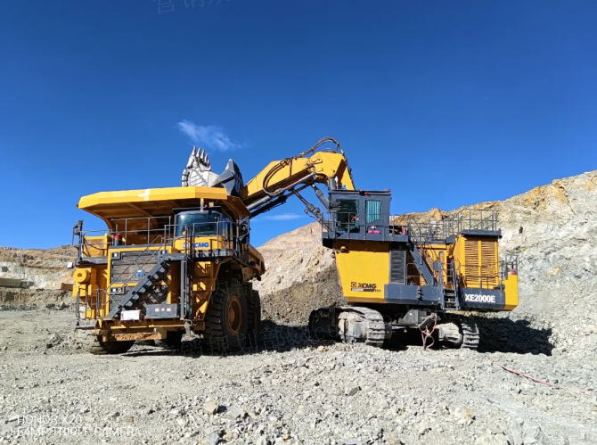 在開采環節,徐工XE2000E電動液壓挖掘機憑借強悍性能擔當先鋒。該設備配備12m3標準斗容,通過優化液壓系統與專屬“礦山模式”,既提升作業效率又降低操作門檻其礦山作業數據表現卓越:單臺月均運行超540小時,可動率穩定在92%-93%,更曾實現整月“零停機”紀錄。