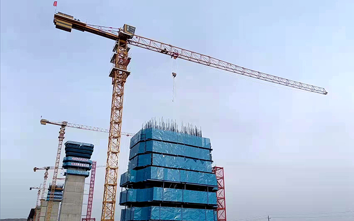 XGT6015-8S1塔機高效運轉,游刃有余地應對緊張、繁重的吊裝任務,為項目建設保駕護航。