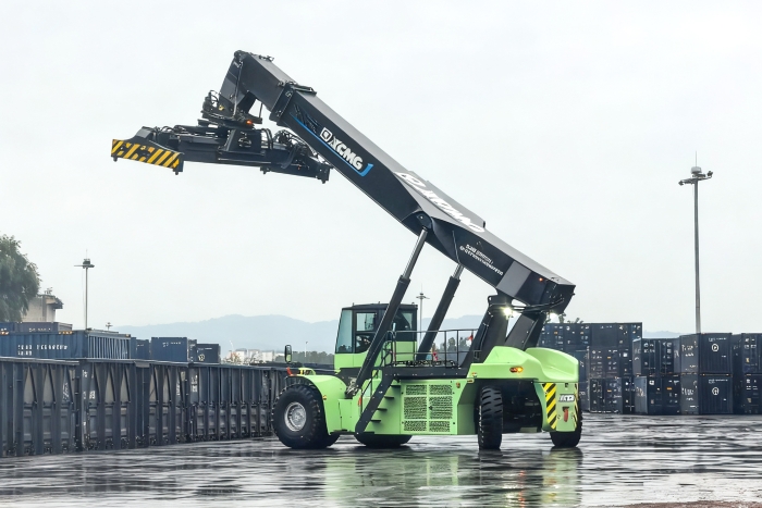 徐工純電動正面吊搭載大功率分布式多電機驅動系統,動力充沛、通過性強兼具高承載能力、長保養周期等突出特點,在持續高強度作業中表現穩健,深得客戶信賴。