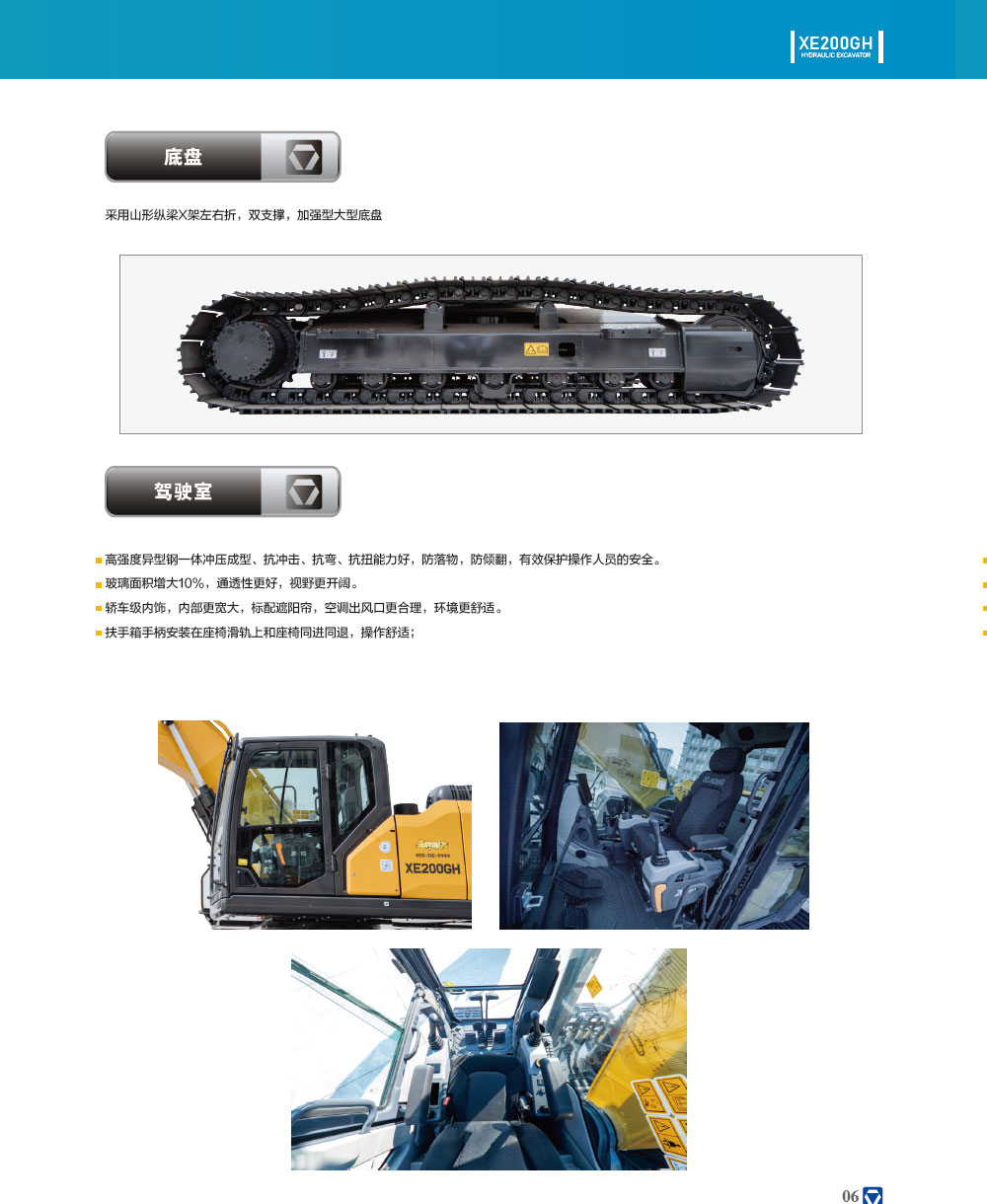 XE200GH液壓挖掘機是我公司以客戶為中心匠心打造的全新一代產品。擁有六大領創科技,采用我公司自主研發的全電控液壓系統,搭載PIC前饋智能控制技術,定制化低速大扭矩康明斯發動機,豪華正壓駕駛室及便捷的人機交互系統,客戶體驗更佳,使用經濟可靠。廣泛適用于市政工程、商業住宅、農田水利、新農村建設、公路橋梁等場所的挖裝作業。